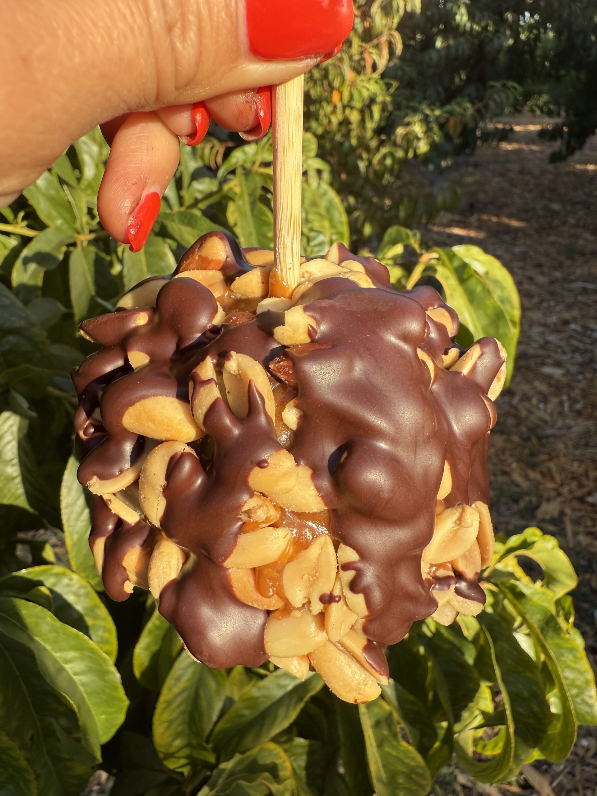 * Triple Treat: Hand Dipped Caramel, Rolled with Peanut Halves and Dark Chocolate Drizzle